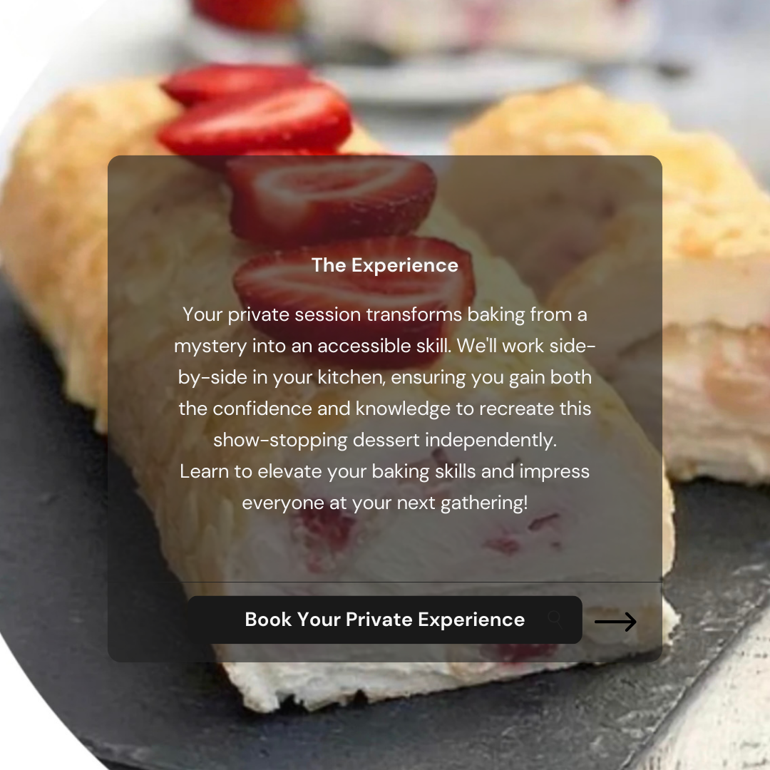 Your private session transforms baking from a mystery into an accessible skill. We'll work side-by-side in your kitchen, ensuring you gain both the confidence and knowledge to recreate these 3 show-topping desserts independently.